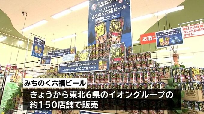 「みちのく六福ビール」は25日から東北6県のイオングループのおよそ150店舗で販売されています。