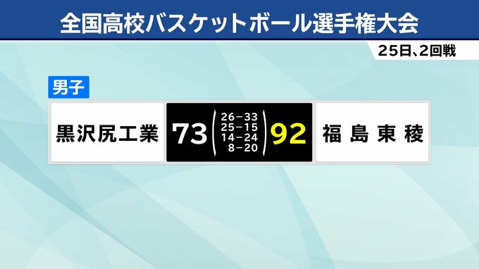 一方、男子の黒沢尻工業は、25日の2回戦で福島代表の福島東稜に73対92で敗れました。