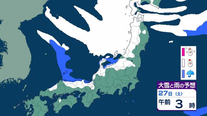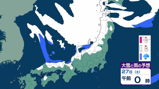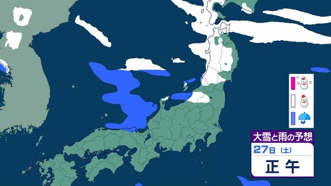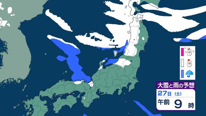 【警報級大雪のおそれ】26日(金)未明~昼過ぎは特に注意!平地でも20センチの積雪か 年末帰省ラッシュ 交通障害にも要注意【雪と雨の最新シミュレーション25日(木)~30日(火)】【大雪情報】 毎日放送 2025年12月25日(木) 15:31 国内 天気 27日(土)の雪と雨のシミュレーション 【画像を見る】いちばん雪が降るのはいつ?◆25日◆26日◆27日◆28日◆29日◆30日
