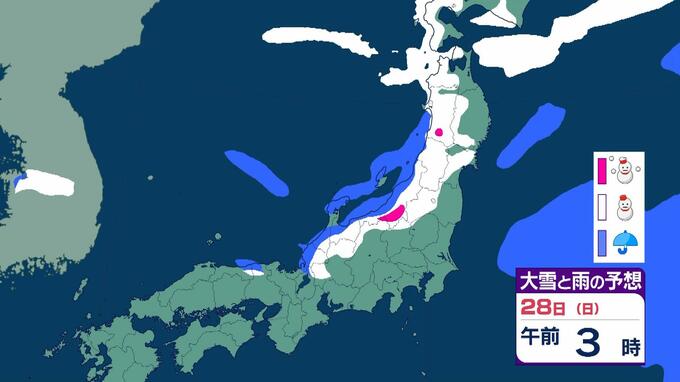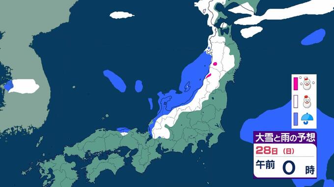 【警報級大雪のおそれ】26日(金)未明~昼過ぎは特に注意!平地でも20センチの積雪か 年末帰省ラッシュ 交通障害にも要注意【雪と雨の最新シミュレーション25日(木)~30日(火)】【大雪情報】 毎日放送 2025年12月25日(木) 15:31 国内 天気 28日(日)の雪と雨のシミュレーション 【画像を見る】いちばん雪が降るのはいつ?◆25日◆26日◆27日◆28日◆29日◆30日