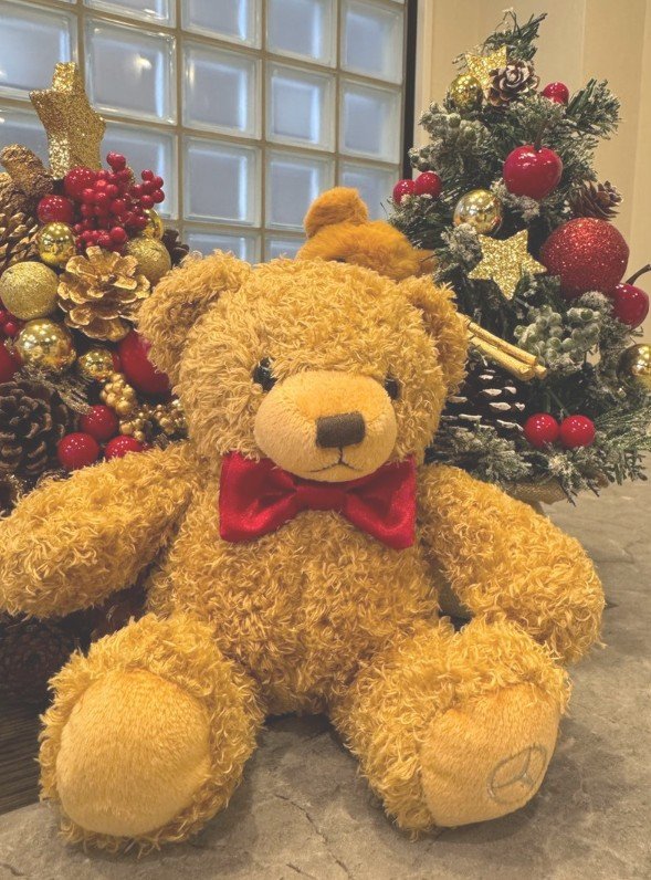 堀ちえみさんはクリスマスツリーをバックに、撮影したテディベアのぬいぐるみの画像を添えて、「ベンツの担当者が、クリスマスベアを持って来てくださいました。」と投稿。愛車・ベンツの担当者から、クリスマスのプレゼントをもらったことを報告。