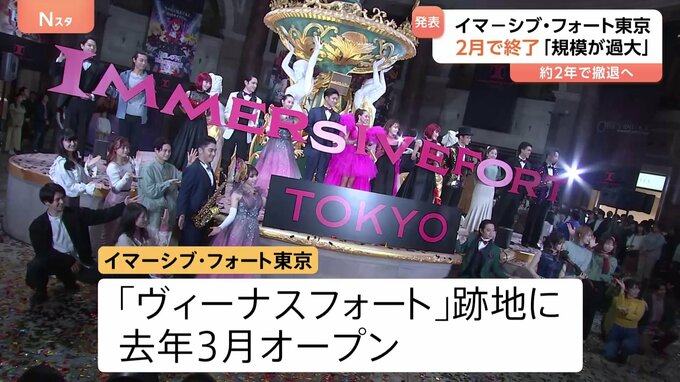 東京・お台場の屋内型テーマパーク「イマーシブ・フォート東京」が、来年2月末で営業終了することになりました。マーケティング会社の「刀」はきょう、運営する「イマーシブ・フォート東京」の営業を来年2月28日に…
