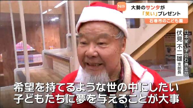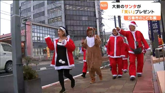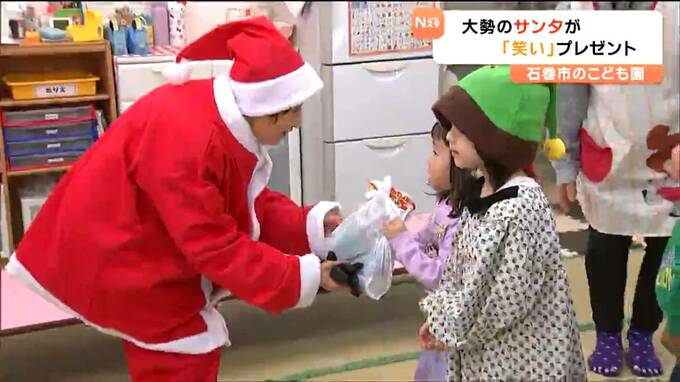 25日は子どもたちが待ちわびていたクリスマスです。宮城県石巻市の子ども園には大勢のサンタクロースやトナカイが登場し、園児たちにお菓子と「笑い」のプレゼントを届けました。