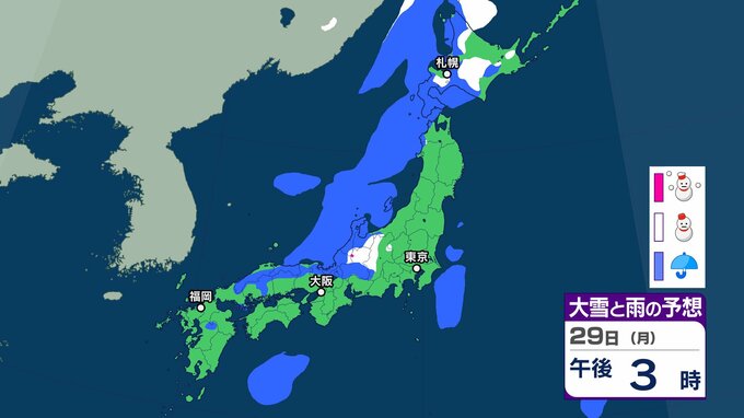 【雪雨情報】27日(土)帰省ラッシュに直撃か→関東甲信・近畿・中国地方など50センチの降雪量予想【気象庁 25日・午後5時半発表】 RSK山陽放送 2025年12月25日(木) 17:30 国内 天気 29日(月)雪と雨のシミュレーション