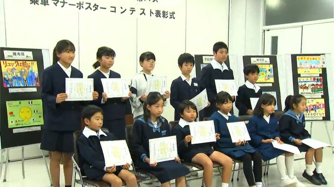 鹿児島市電と市バスの乗車マナーをテーマにしたポスターコンテストの表彰式が25日開かれました。コンテストは今回で5回目で今年は鹿児島市内の小学生から82点が寄せられました。25日は入賞した12人が表彰されまし…