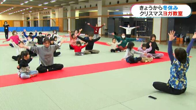 鹿児島市が開いた「親子deととのうクリスマスヨガ教室」には、冬休みの小学生とその保護者33人が参加しました。