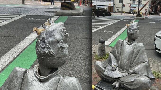 男性警察官は8月19日の夜、秀吉像の頭部を両手でつかんで回し首の部分を折った疑いが、西区の男性はその4日後に頭部を蹴り落とした疑いがもたれていて、2人に面識はないとみられます。