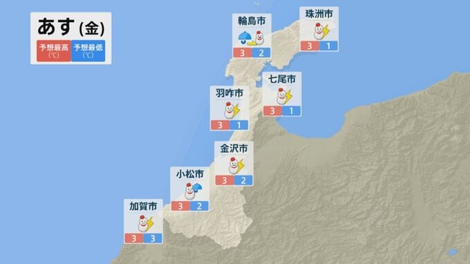 最大瞬間風速は、加賀・能登ともに陸上と海上でいずれも35メートルの予想で、特に26日未明から朝にかけて暴風に警戒が必要です。