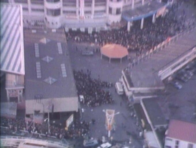 そんな氷点下に近い過酷な状況下でも人々の熱狂は収まりません。後楽園球場前の売り場では、発売3日前から若者2人組が並び始めたのをきっかけに徹夜組は7000人にまで増えていました。
