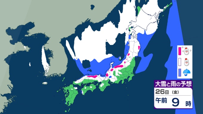 気象庁によりますと、あす26日(金)にかけて、日本付近は冬型の気圧配置が強まり、日本海側を中心に大荒れの天気となる見込みです。特に「JPCZ(線状の雪雲)」が直撃する地域では、短時間で積雪が急増する恐れがあります。