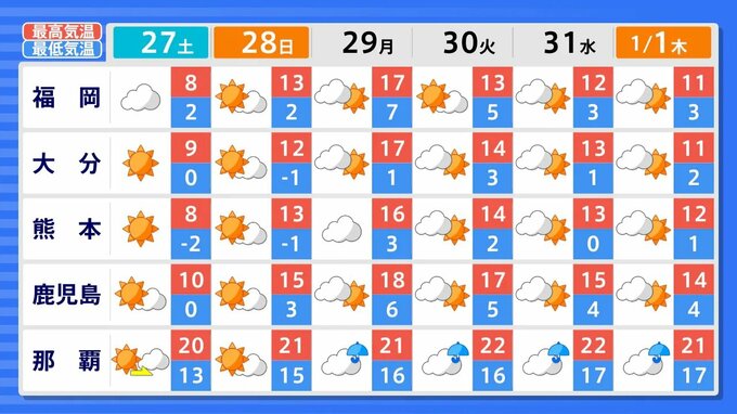 【九州 低温注意報 今季初の発表】大雪のおそれなくなるも  あす朝「路面凍結」「水道管凍結」に注意【気温シミュレーション26日(金)~29日(月) /  九州各都市の年末年始の天気予報(1月5日まで)】福岡・佐賀・長崎・大分・熊本・宮崎・鹿児島|TBS NEWS DIG