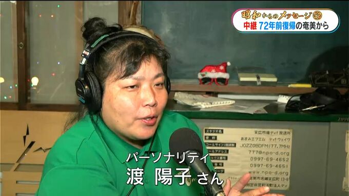 (パーソナリティ 渡陽子さん)「奄美群島日本復帰72周年の日ということで、当時を知る語り部の方をお迎えして振り返っていただいていた」