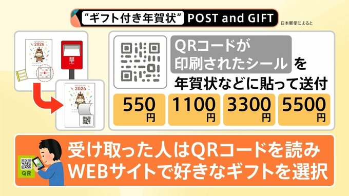 送る機会が減った「年賀状」も、QRコードを使った物が注目されていて、お年玉付きなぬ“ギフト付きの年賀状”が登場しているということです。