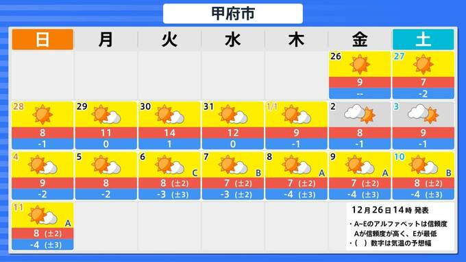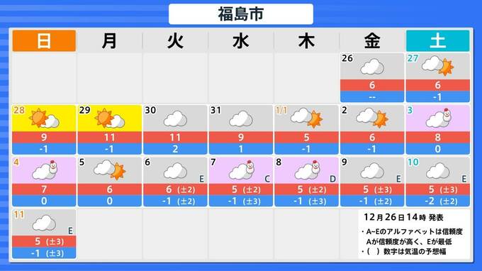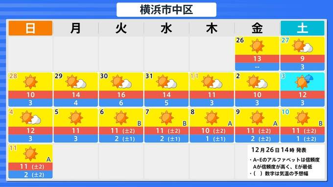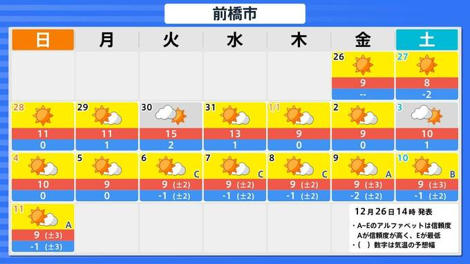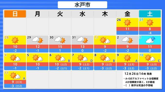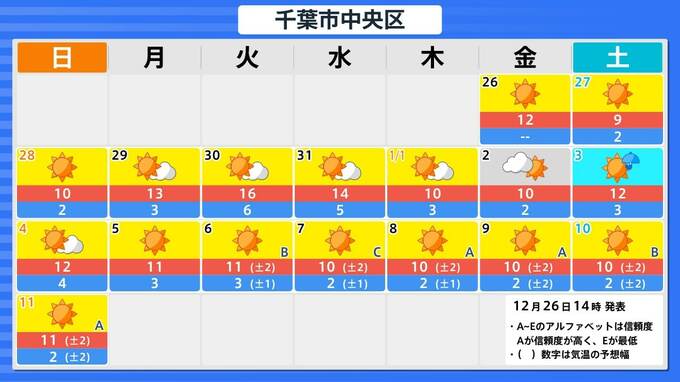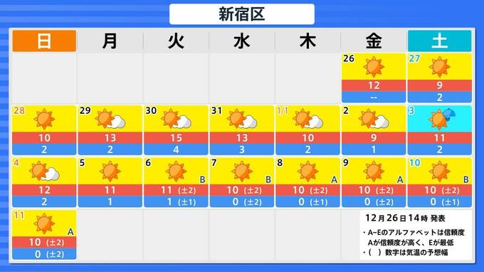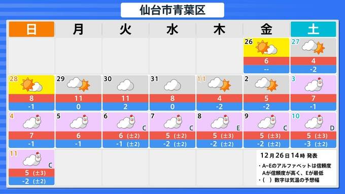 《極大期》の1月4日は太平洋側で晴れマークが多くなっています。
