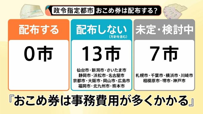 調査をしたところ、政令指定都市で“おこめ券”を配布するという自治体は「0市」でした。