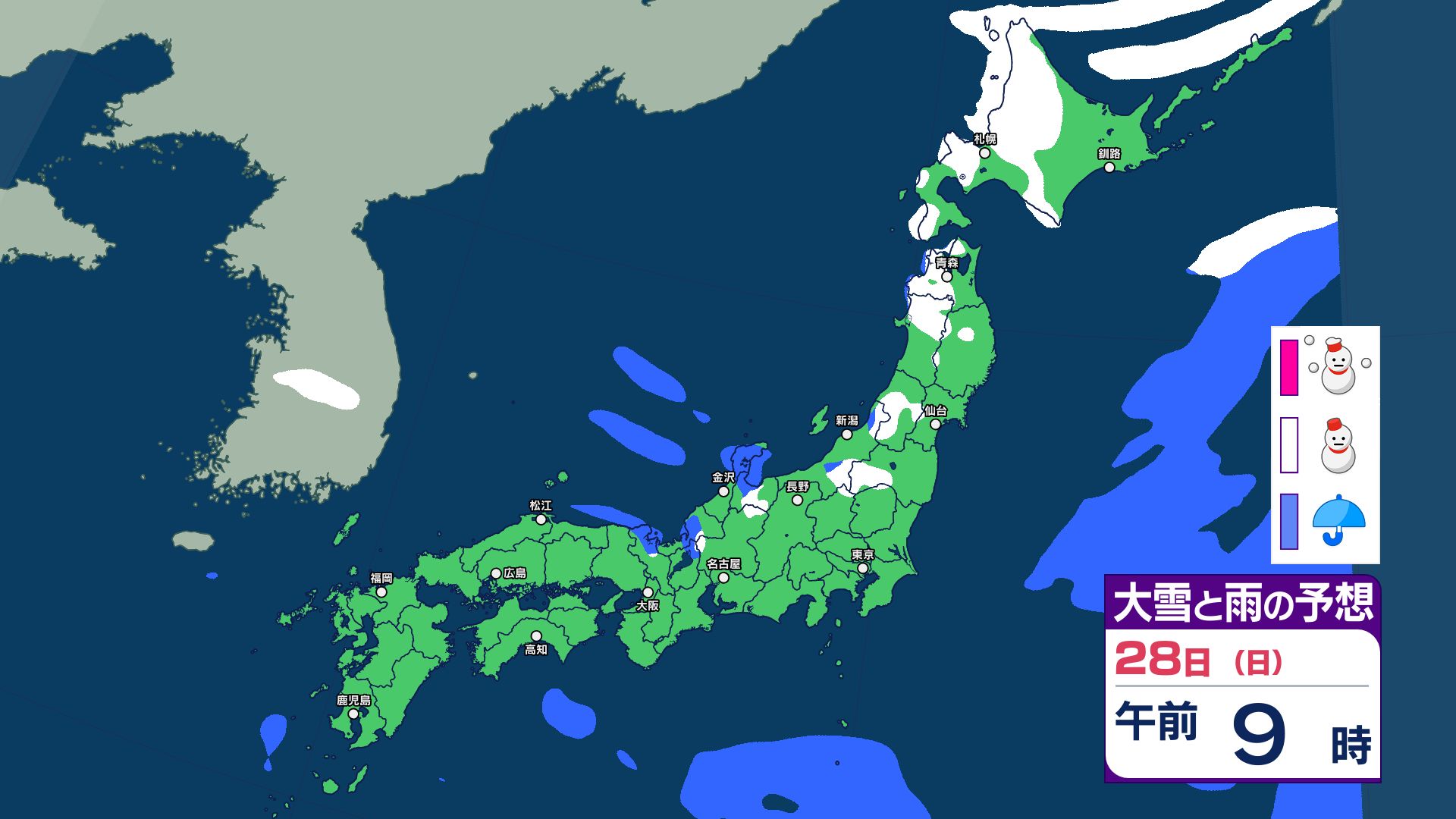雪と雨のシミュレーション 12月29日~30日