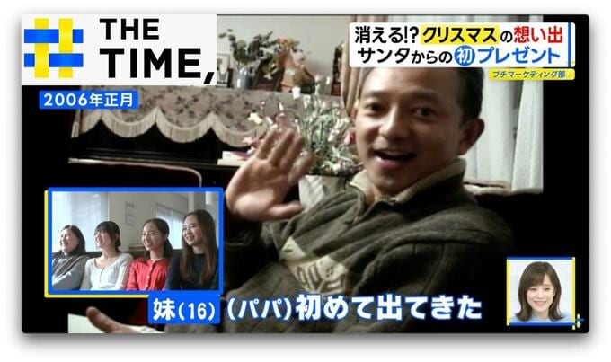 お年玉の袋を手にはしゃぐ2歳の姉妹の様子以上に、みんなの視線が集中したのは“若い頃のお父さん”。