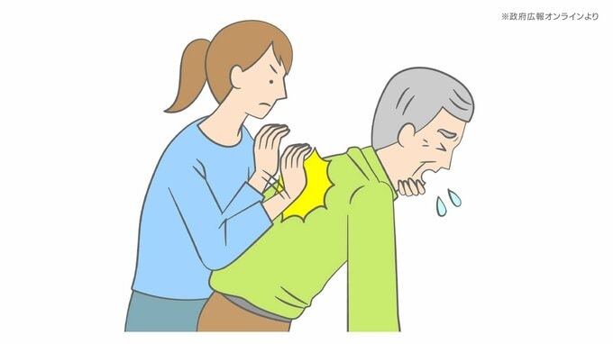 有効な応急手当として推奨されているのが「背部叩打法(はいぶこうだほう)」です。