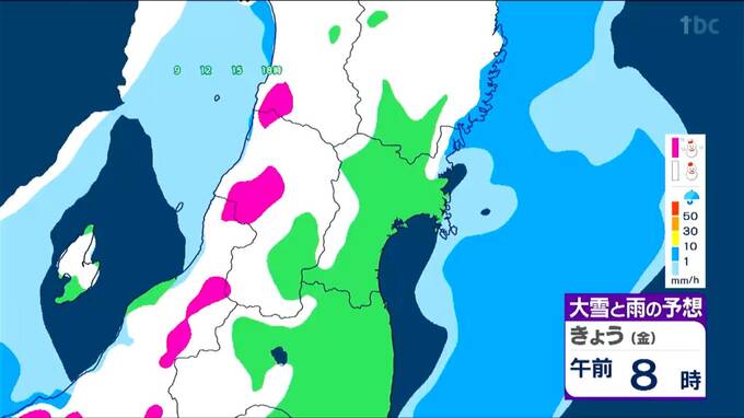 山沿いでは既に雪が降っているところがあります。七ヶ宿では吹雪いてきている様子で、この後こういった山沿いの地域では本格的な雪となり、吹雪によって視界が悪くなるところも出てきそうです。