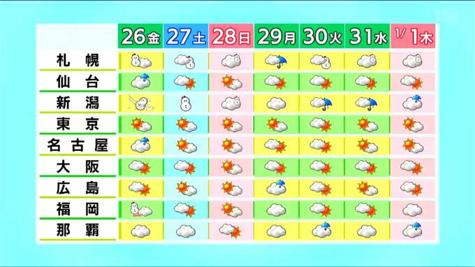 全国的に、穏やかな年末年始というところが多くなりそうです。