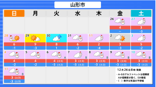 【山形天気】庄内では大雨や大しけに 26日夜遅くにかけて暴風雪や高波に警戒 山形・全国の天気を画像で 気象庁 テレビユー山形 2025年12月26日(金) 11:04 国内 ■山形・全国の天気(画像) 画像はTBS NEWS DIG Powered by JNNより 画像ありの記事を最初から https://newsdig.tbs.co.jp/articles/-/2372463?display=1