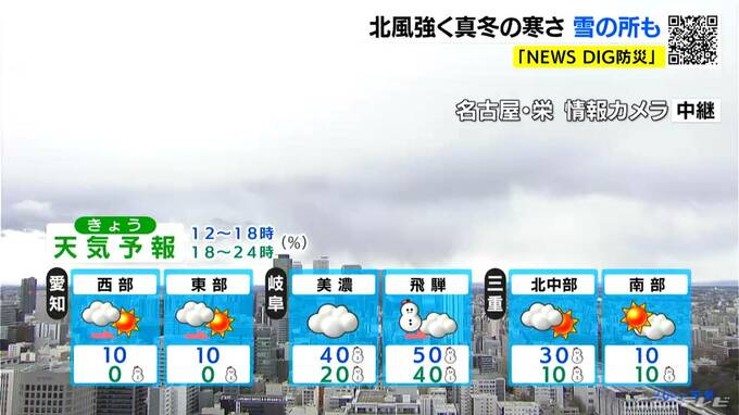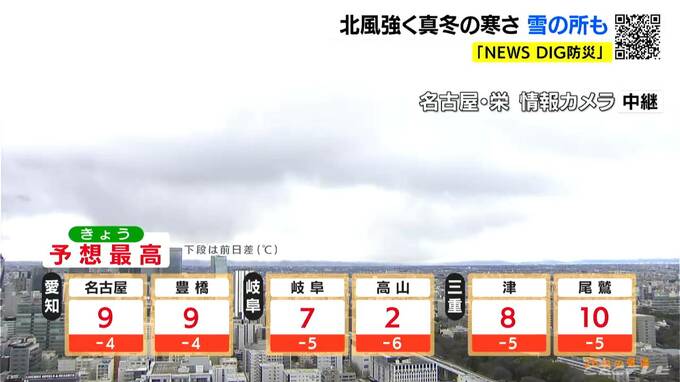 予想最高気温は、名古屋で9℃、岐阜で7℃、津で8℃、高山は2℃までしか上がらないでしょう。