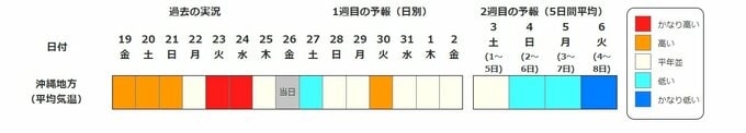 沖縄地方は4日頃からかなりの低温 平年差が大きく注意必要