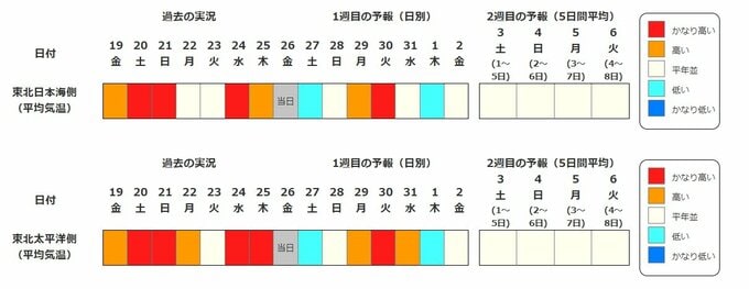東北地方では、1月4日頃から強い寒気が流入する影響で、東北日本海側を中心に、この時期としては降雪量がかなり多くなる可能性があります。