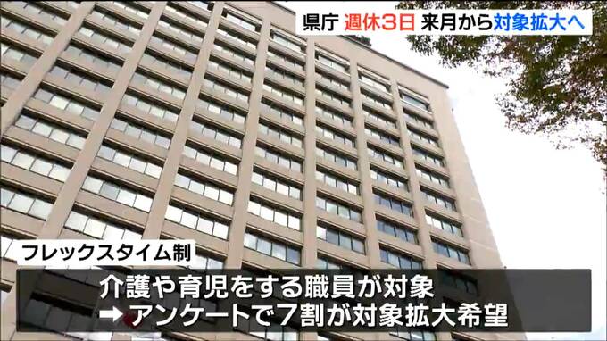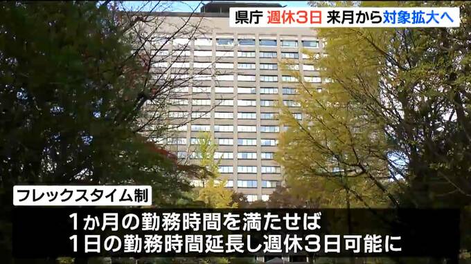 宮城県は「週休3日」が可能となるフレックスタイム制について、2026年1月1日から対象を全職員に拡大することを決めました。
