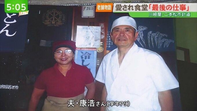 お客さんから愛され続ける川崎屋に今年、大きな出来事が。店主で夫の康浩さん。今年4月、79歳でこの世を去りました。その2か月後、佐智子さんはお店の暖簾を新しくしました。
