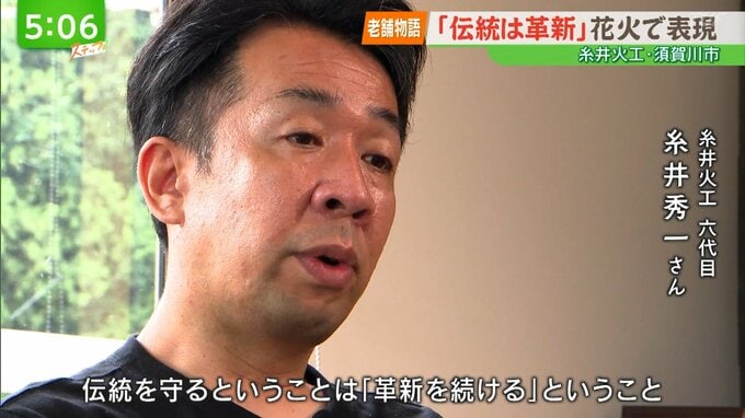 --糸井秀一さん(六代目)「伝統を守るということは革新を続けるということ。先人もその時代に合った革新を続けてきたからこそ、花火という仕事が残っていると思うので。」
