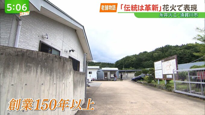 夜空を彩る夏の風物詩、釈迦堂川の花火。製造を手掛けるのは、須賀川市で創業150年以上の「糸井火工」です。
