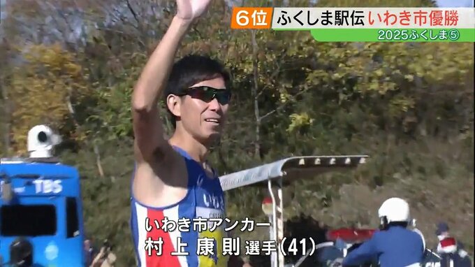 3区の途中から最終16区までトップを守り抜いたいわき。アンカーを任されたのは、41歳のベテラン村上康則選手でした。去年3秒差で優勝を逃した悔しさを胸にゴールへとひた走ります。