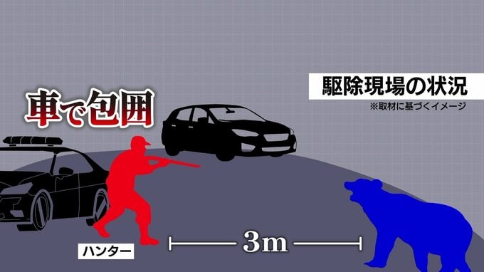 ハンターの男性が指示して、役場の車とパトカーが、現場付近を包囲。3メートルほどの距離まで、クマを引きつけたと当時を振り返ります。