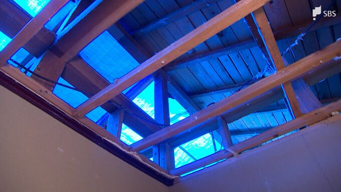 「ここの屋根が半分飛ばされて、雨が入ってきた。(判定結果は)全壊だと思ったが全壊にならないもんで」