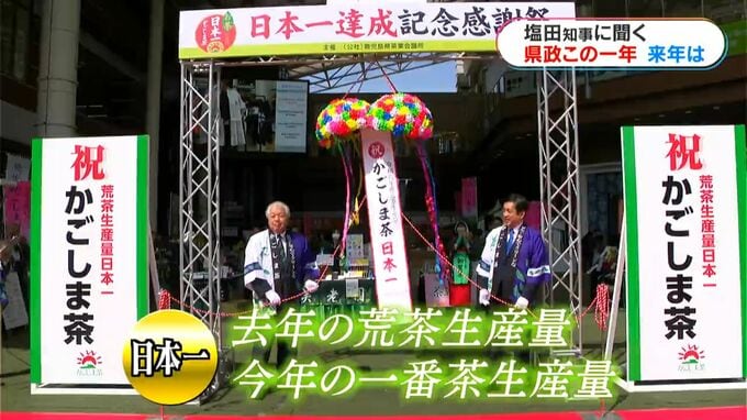 (塩田知事)「茶。鹿児島県にとって一番うれしかったのは、お茶の生産量が初めて日本一になった。非常に素晴らしい一年になった」