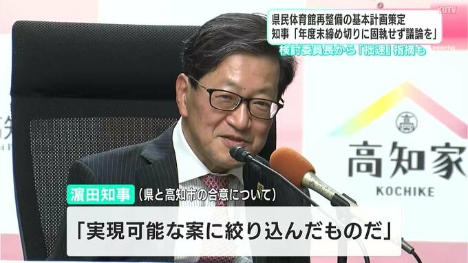 県民体育館の再整備を巡り、検討委員会の委員長が進め方を「拙速だ」と発言したことを受け、濵田知事は会見で、「年度末の締め切りに固執せず議論を詰めてもらいたい」という考えを示しました。