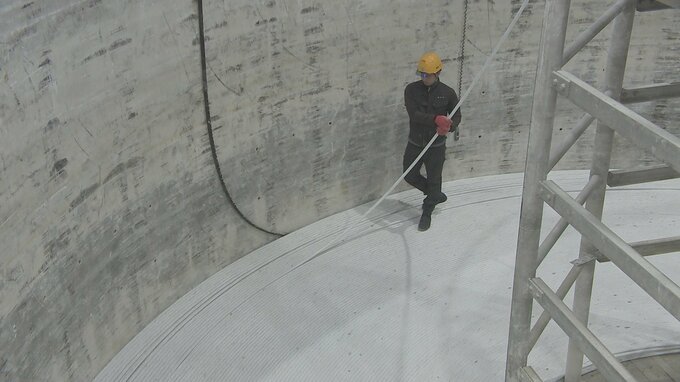 「このタンク1つに巻く量は90kmだと思ってください」