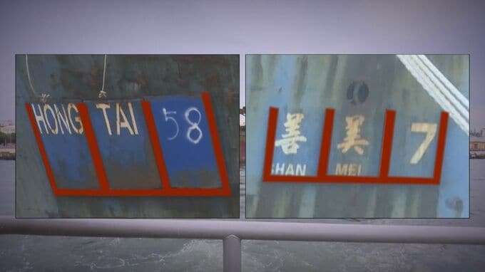 船体をよく見ると船の前方には「HONG TAI」と表記されている一方、後方には「SHAN MEI」の文字が。カモフラージュのためなのか、船名を掛け替えられるような枠があるようにも見える。