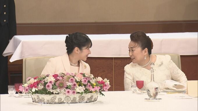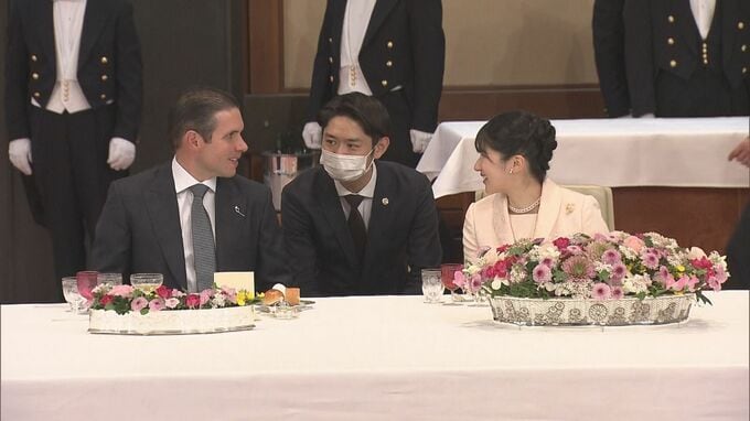 入室して最初は、独特の雰囲気もあって緊張した様子だった。左隣に信子さま、右隣にブラジルのウーゴモッタ下院議長という並び。信子さまと仲睦まじく話されていたが(※信子さまは身振り手振りで過去の晩さん会についてレクチャー)、反対側に座る下院議長とは、挨拶したり目を合わせたりするタイミングが難しく、迷われているようだった。
