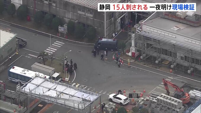 きのう、静岡県三島市の工場で15人が刃物で刺された事件で、現場の工場では朝から現場検証などが行われています。報告「殺人未遂のあった工場の上空です。警察による鑑識作業が行われています」事件から一夜明け、…