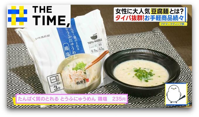 豆腐製品を手がける『相模屋食料』からは、スープも豆乳でできた“豆腐づくし”の「たんぱく質のとれる とうふにゅうめん 鶏塩」(235円)