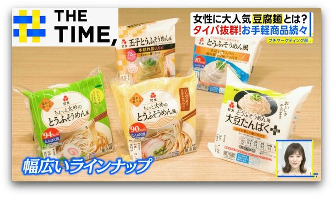 また、「豆腐千食堂 マサラカレー」(598円)は、“平打ちの豆腐麺”が入ったレトルト商品で、他にもスープカレーやグリーンカレーなども展開されています。