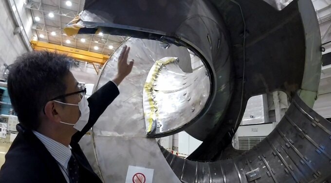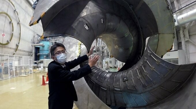 「こちらには、マイナス269度で冷やされた超電導コイルが設置される。宇宙の温度がマイナス270度くらいなので、ほぼ宇宙空間の温度。こちらには1億度のプラズマ、まるで星の温度」