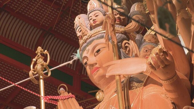 那谷寺の金堂華王殿に安置されている本尊の十一面千手観音は高さ7.8メートルあり、普段はほこりを落とすことができないため、毎年、年末にお身ぬぐいを行い新年に備えます。
