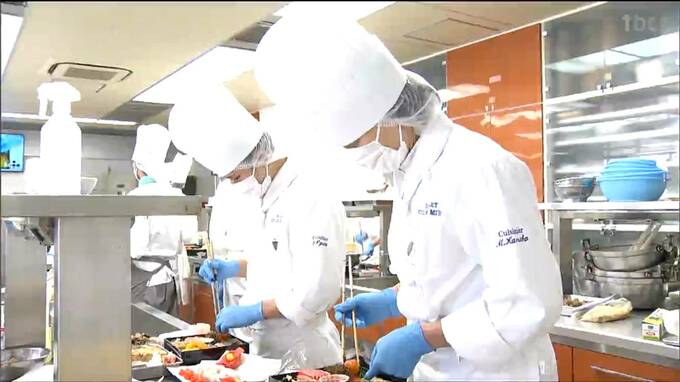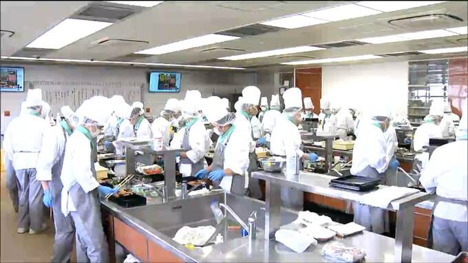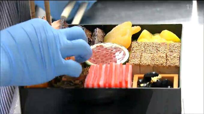 仙台市青葉区の宮城調理製菓専門学校では27日、調理師養成課程の1年生86人が今月23日から仕込んだカズノコの粕漬けや紅白なますなどをお重に詰めました。