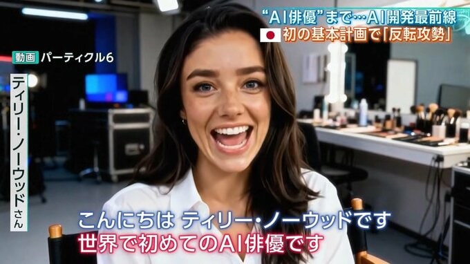 「こんにちは、ティリー・ノーウッドです。世界で初めてのAI俳優です。あなたに会えてうしいです」