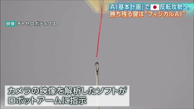 業界で技術革新と評価されたのが、カメラの映像を解析したソフトがロボットアームに指示を出して針の穴に糸を通す技術です。