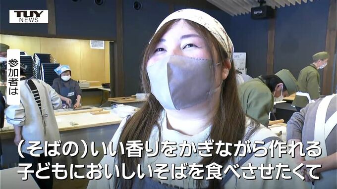 参加者は「(そばの)いい香りをかぎながら作れること。子どもにおいしいそばを食べさせたくて作った」