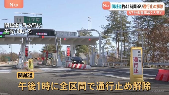 群馬県みなかみ町の関越道で車67台が絡み2人が死亡した多重事故。発生からおよそ41時間が経ったきょう午後1時に、全区間で通行止めが解除されました。警察によりますと、おととい午後7時半ごろ、みなかみ町の関越…